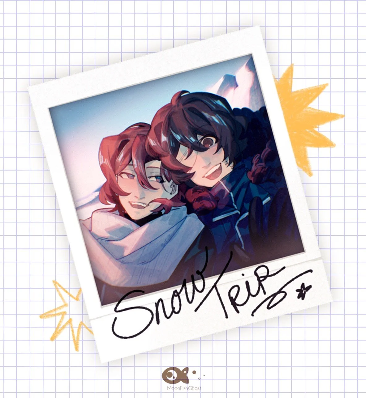 Luneat’s pencil sketch style of 1-2 characters posed for a polaroid photo. Available only colored and with a snowy background included.
