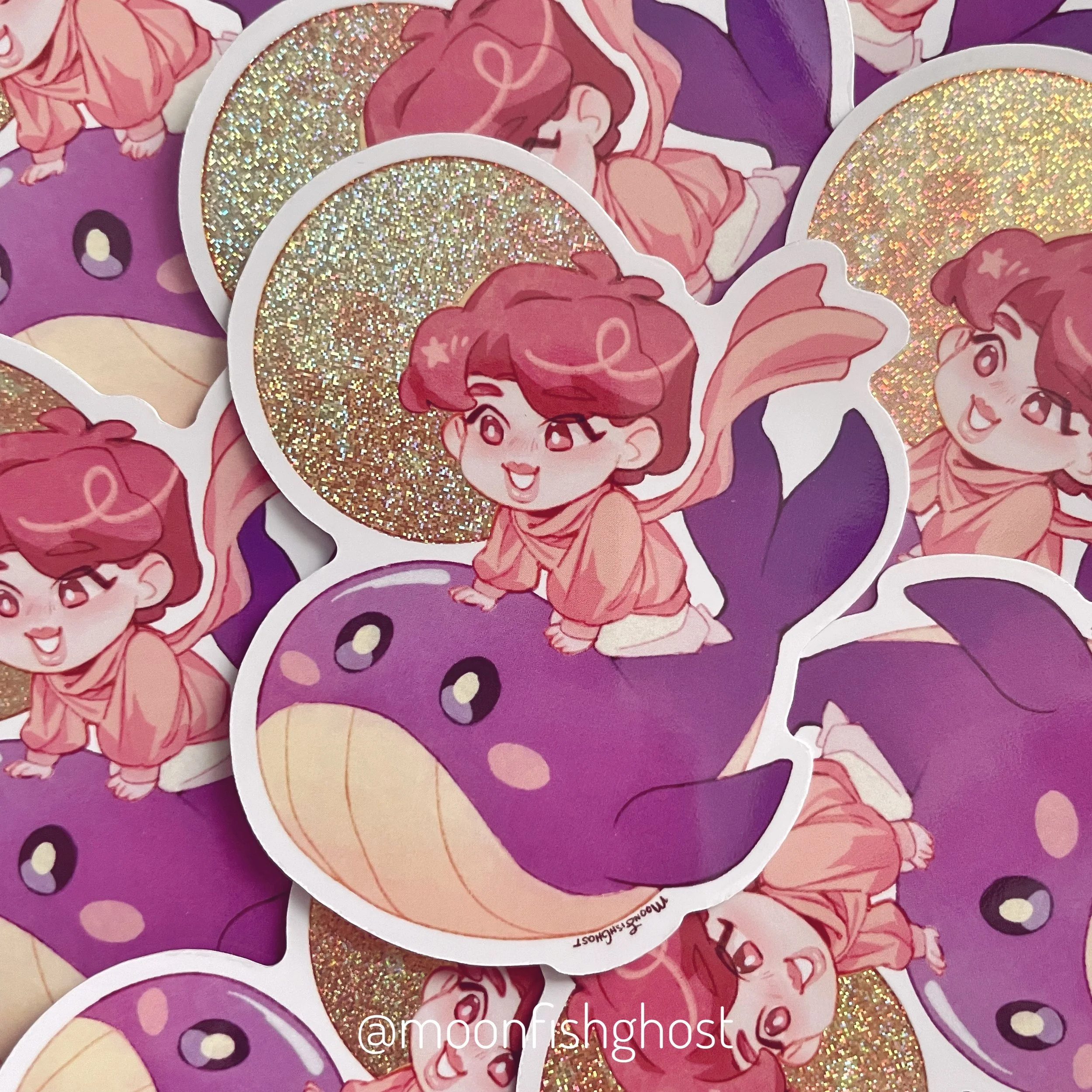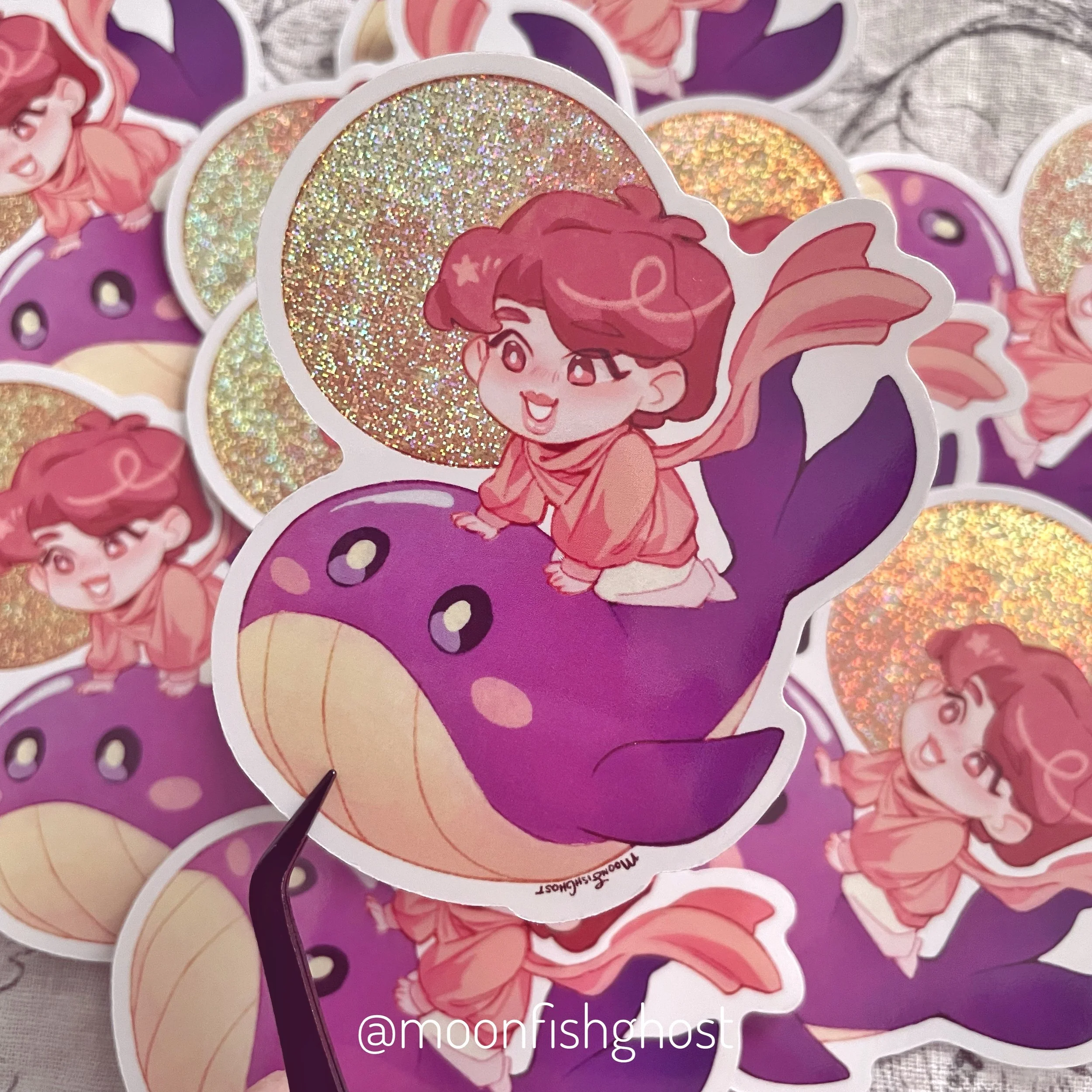 Inspired by BTS Jin and his song "Rope It". This ~3in vinyl sticker has a pixiedust holographic effect in select areas, specifically on the stars. The sticker is weather proof and is very durable for day to day use.